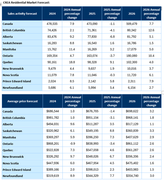CREA Says Resale Housing Market Forecasts For 2025 And 2026 Show Rebound