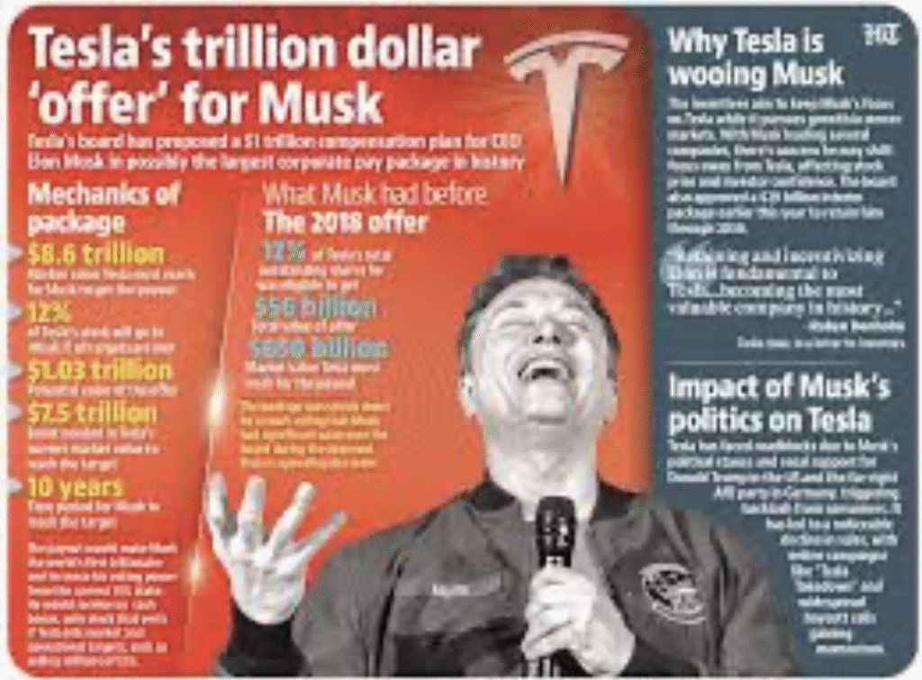 I fail to understand why Elon Musk has been offered such a pay package. Maybe it is designed to signal that he is unique in the world to whom normal rules of society do not apply. Whatever the reason, it is obscene and disgusting.