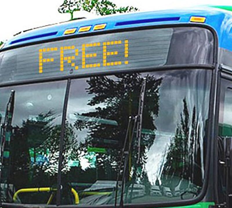 Free public transportation will encourage people to leave cars at home reducing greenhouse gases and pollution. It will also help in reducing vehicle congestion in urban areas leading to cities becoming more sustainable. Also, by making transportation free, there will be no need to invest in a fare collection enforcement system saving significant funds.